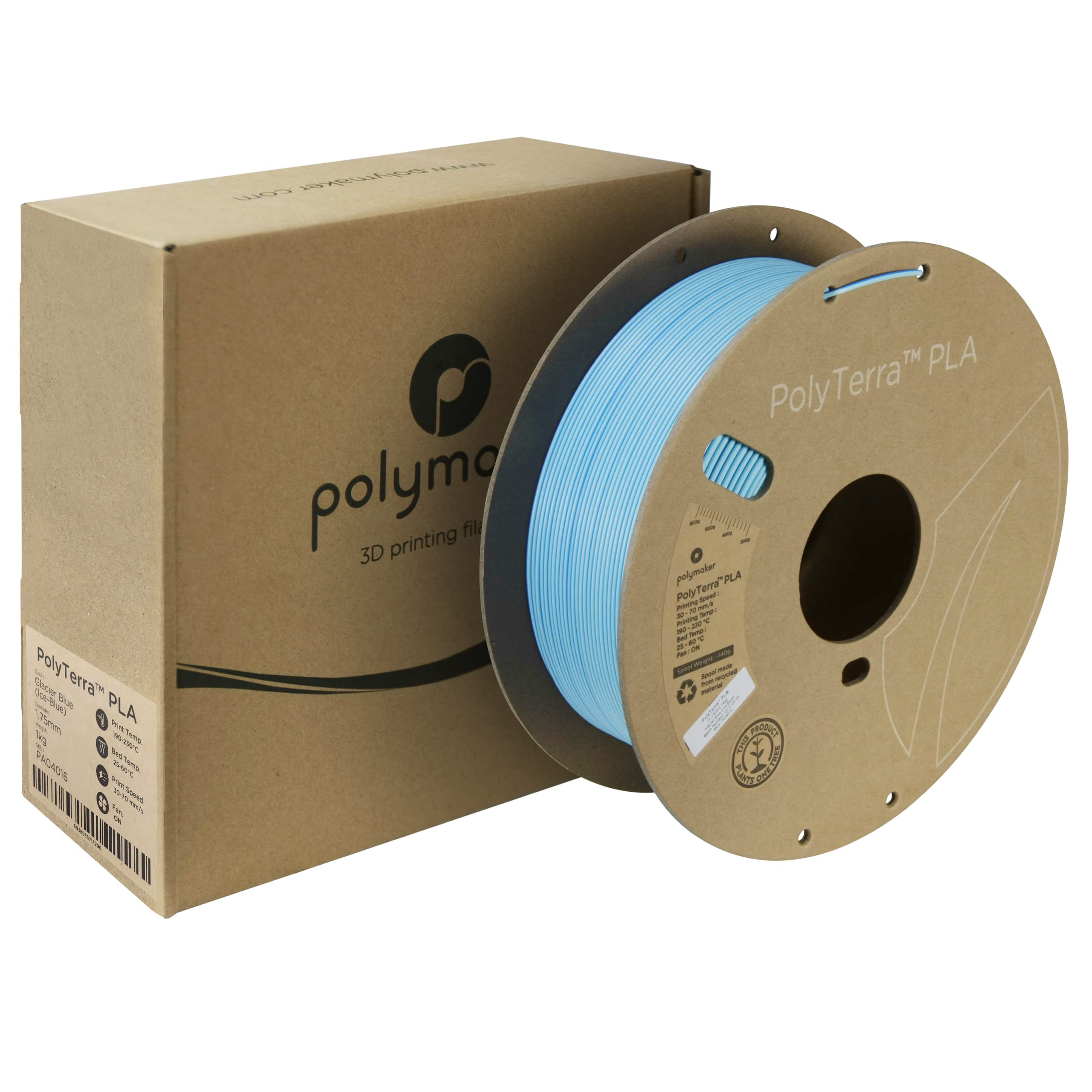 - ♻️ Cardboard Spool: PolyTerra PLA filament comes in fully recycled cardboard packaging and is well-liked by hundreds of thousands of Polymaker customers.