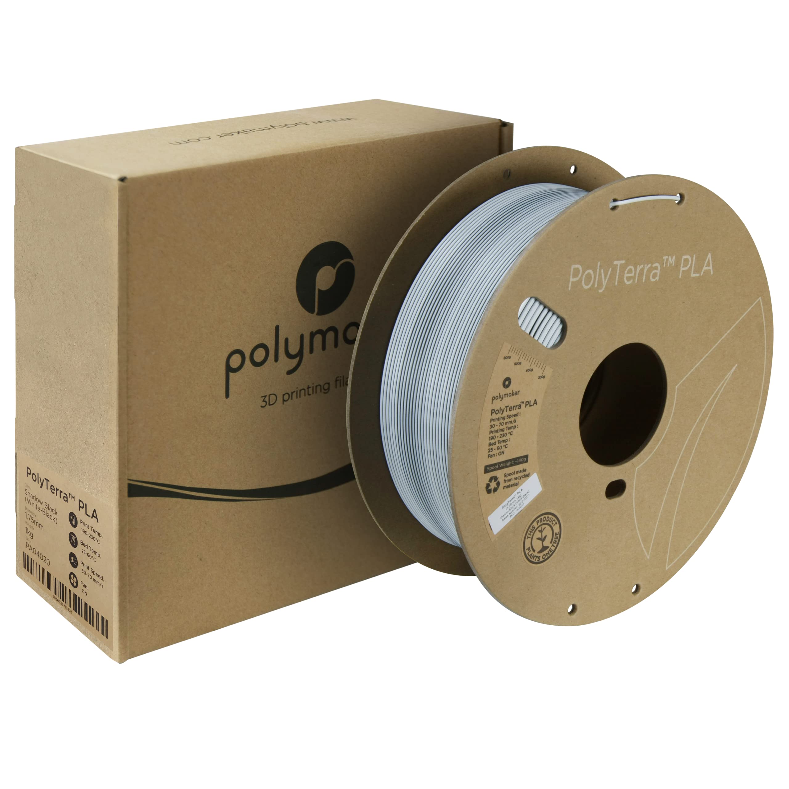 Polymaker Matte PLA Filament Matte Shadow Black (White-Black) 1.75mm 1kg 3D Printing Filament, PolyTerra 3D Printer PLA Filament